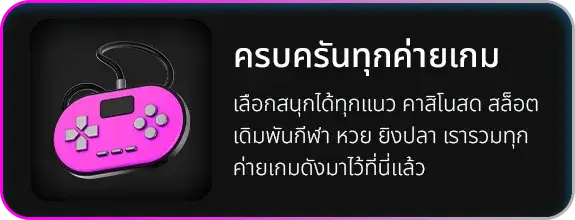 ตอบ : มีคาสิโนสด สล็อต กีฬา เกมไพ่ หวย และเกมยิงปลา ครบวงจรมากกว่า 1,000 เกม